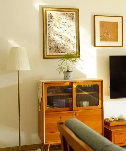 一般来说,带脚的家具会比整体落地的更好搭配,显得轻盈通透。