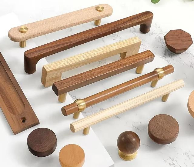 5、柜门拉手,首选无拉手设计,如果需要拉手去点缀,可以选择小巧精致的哑光材质拉手,如哑光黑、哑光铜、木制拉手。