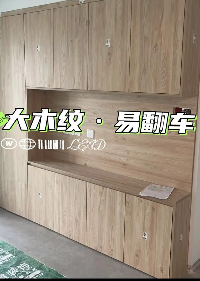 1、全屋定制,劣质贴皮木纹重复率高得像复制粘贴,纹理模糊、毫无立体感,满满的“塑料”味,一眼假!远看还行,近看却像出租屋标配的廉价板材。